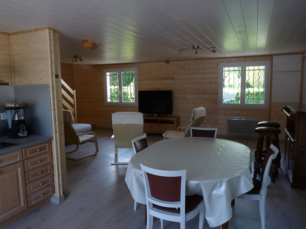 Le rez de chaussée est accessible aux personnes à mobilité réduite. Il comprend une cuisine avec four combiné micro-ondes, plaque de cuisson vitrocéramique, cafetière et lave-vaisselle, une salle à manger-salon avec TV et bar, 2 Chambres avec un grand lit de 140 cm, une salle d’eau avec douche et un WC indépendant.